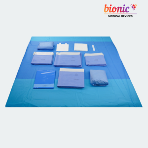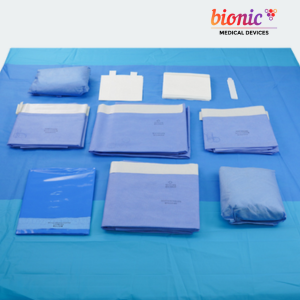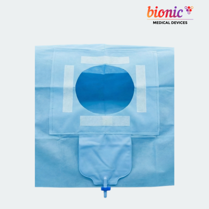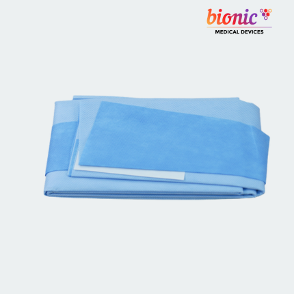 Caesarean Drape premium meant to protect patient from the spread of infections during caesarean. Drape designed with the latest generation SMS technology. Bionic drapes made of medical grade SMS fabric, which meets AAMI Level 3 standards of barrier protection and prevents blood strike through & fluid contamination.